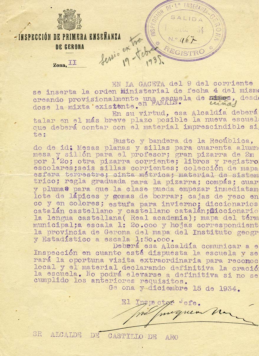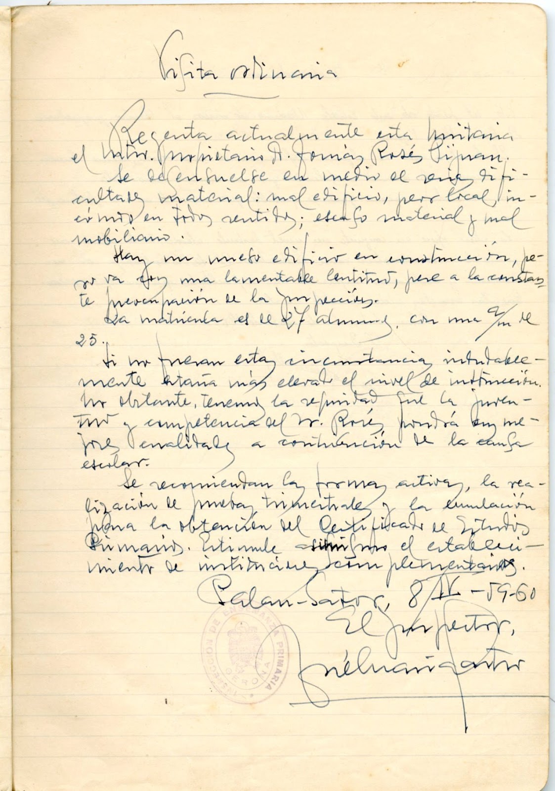 no va millorar. Es pot comprovar en aquesta acta d'inspecció a l'escola